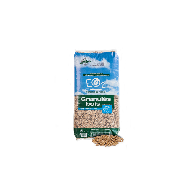 GRANULÉS DE BOIS EO2 – PALETTE DE 66 SACS DE 15KG SOIT 990KG EO2®