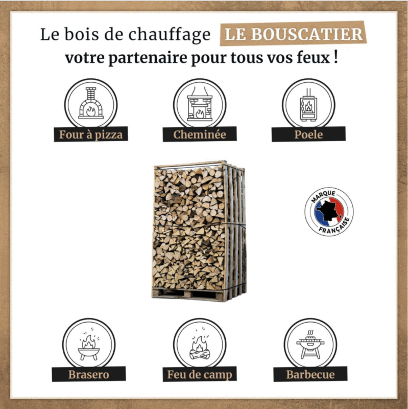 Bois de chauffage français de haute qualité, prêt à l’emploi, composé d’un mélange de feuillus (chêne, hêtre, frêne et châtaignier). Conditionné en palettes pratiques, ce bois fendu de 33 cm garantit un chauffage efficace et durable pour cheminées, poêles ou inserts. Chaque palette correspond à environ 3 stères de bois, offrant un excellent rendement calorifique grâce à son taux d’humidité optimisé pour une combustion propre et homogène.