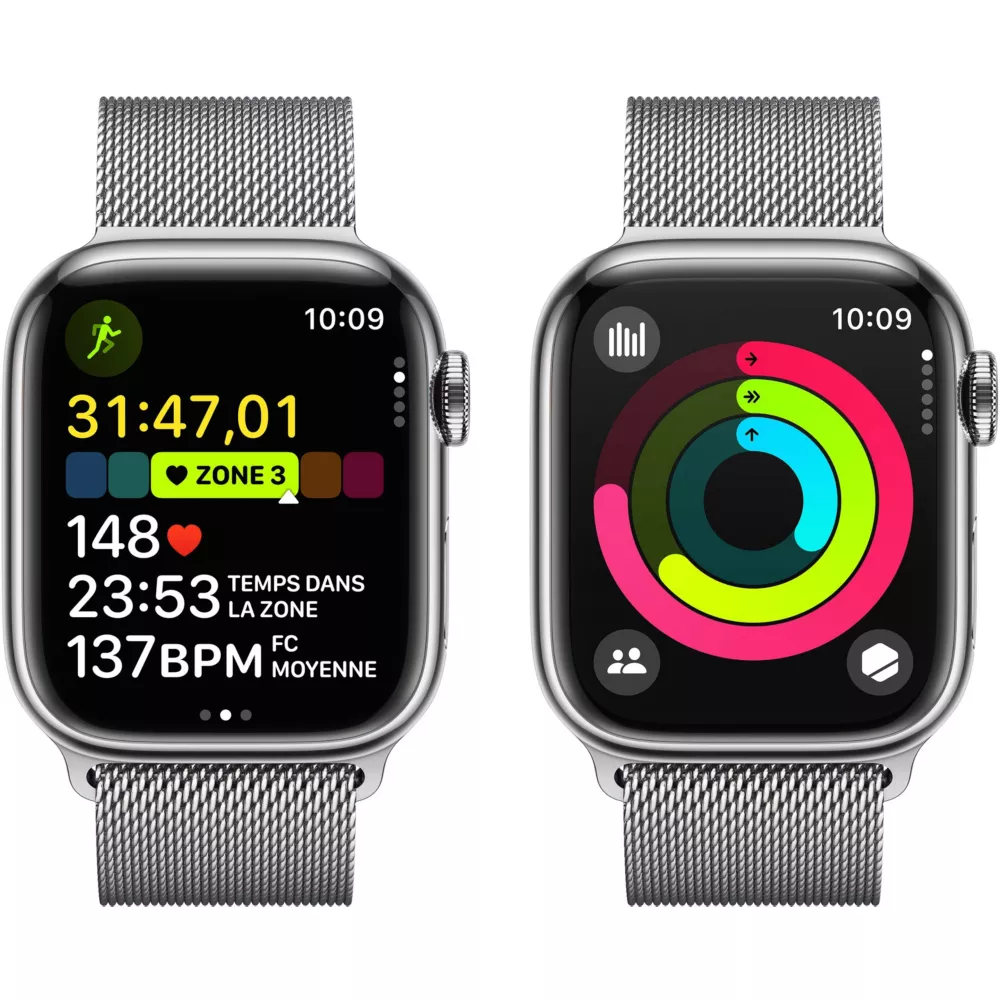 Montre connectée Apple watch Serie 9 Cellular41mm Acier/Argent Milanais Argent Loop