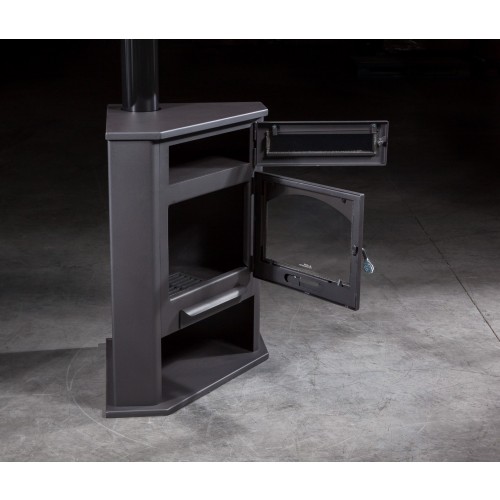 Profitez du confort apporté par ce poêle à bois rustique en acier avec four frontal. Appréciez le spectacle offert par la combustion du bois.