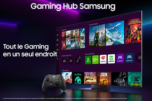 Quantum Mini LED; Quantum HDR 2000 : intensité lumineuse saisissante; Boîtier déporté One connect qui regroupe toute votre connectique pour une intégration parfaite; Gaming : 4 ports HDMI 2.1 en 4K 144Hz; FreeSync Premium Pro/ VRR/ALLM/Mode jeu 21:9 ou 32:9; HDR10+ / HLG: Certifié (HDR10+ Adaptive & Gaming); Immersion (Contrast Enhancer); Capteur de luminosité: Mode confort; Mode Filmmaker; Design: Finesse du cadre: 4 bords fins, Finesse de l’écran: Ultra fin (15mm), Type de pied: Pied Central, Couleur du cadre: Argent, Couleur du Pied: Argent, Mode Ambiant+; Audio: Q-Symphony 2.0, Woofer intégré (basses), AVA (Active Voice Amplifier), Adaptive Sound+, 2 connexions Bluetooth simultanées; eARC; Anynet+ (HDMI-CEC); Smart TV: Contrôle vocal, Samsung TV Plus, Navigateur internet, SmartThings, Guide Universel, Mirroring (TV vers Mobile), Mirroring (Mobile vers TV), Compatible Google Duo, Multi View jusqu’à 2 écrans, Lecteur vidéo/ caméra support 360, TV Sound sur Mobile, Sound Mirroring, PC sur TV (Workspace), Micro intégré au TV; Gaming: Mode jeu auto (ALLM), Game Motion Plus, Super Ultra Wide Game View, Barre de jeu 2.0; Autres fonctionnalités: Allumage instantané, Accessibilité, Recherche automatique des chaînes, Gestion des sous titres; Alimentation: AC220-240V 50/60Hz